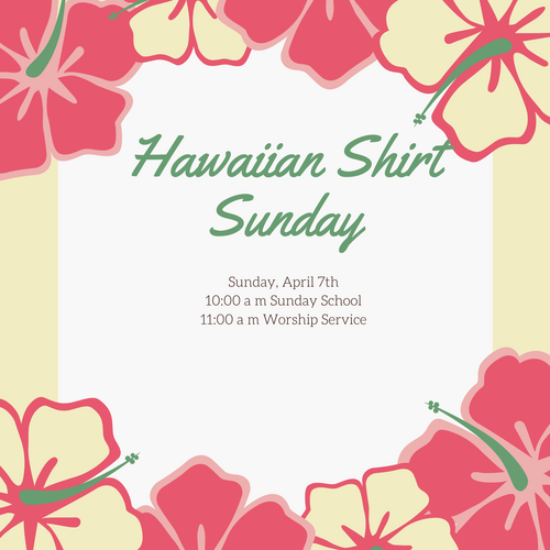 Wear your favorite hawaiian shirt on Sunday, April 7th!