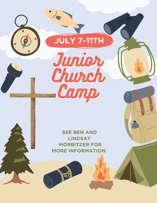 Junior Camp registration is open! If your 4th-7th grader is interested in camp, please see Pastor or Ben Morbitzer for more details.