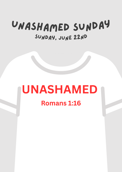 Wear your Unashamed Central Baptist apparel on Sunday, June 22nd!